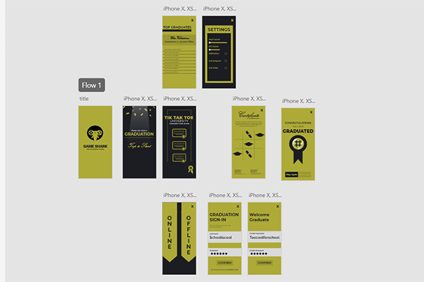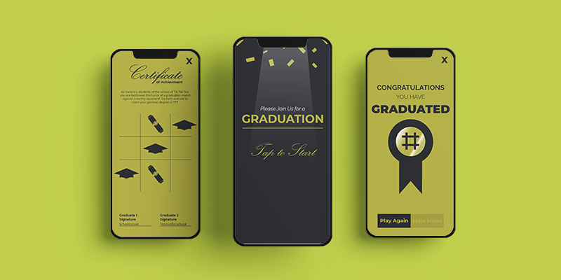 The approach I wanted to take was to incorporate popular aspects from graduation in order to bring the theme in. I as well studied a variety of Tic Tac Toe apps in which I observed that they have all have certain functional features that I wanted to incorporate the design. I wanted to emphasize mostly the usefuleness of the interface.